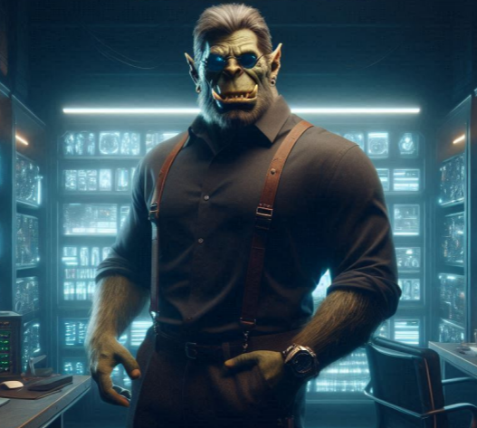 The man who hired them, Charles Bouvier. He is an orc and one of the bosses of the company Neumann, Inoue & Bouvier Ltd. Co. The trio met Charles' in the Den's Den, the bar of a capyton businessman called Den, obviously and who apparently is friends with Charles. It's not clear what Charles' company includes. They do at least delivery and mission person cases.